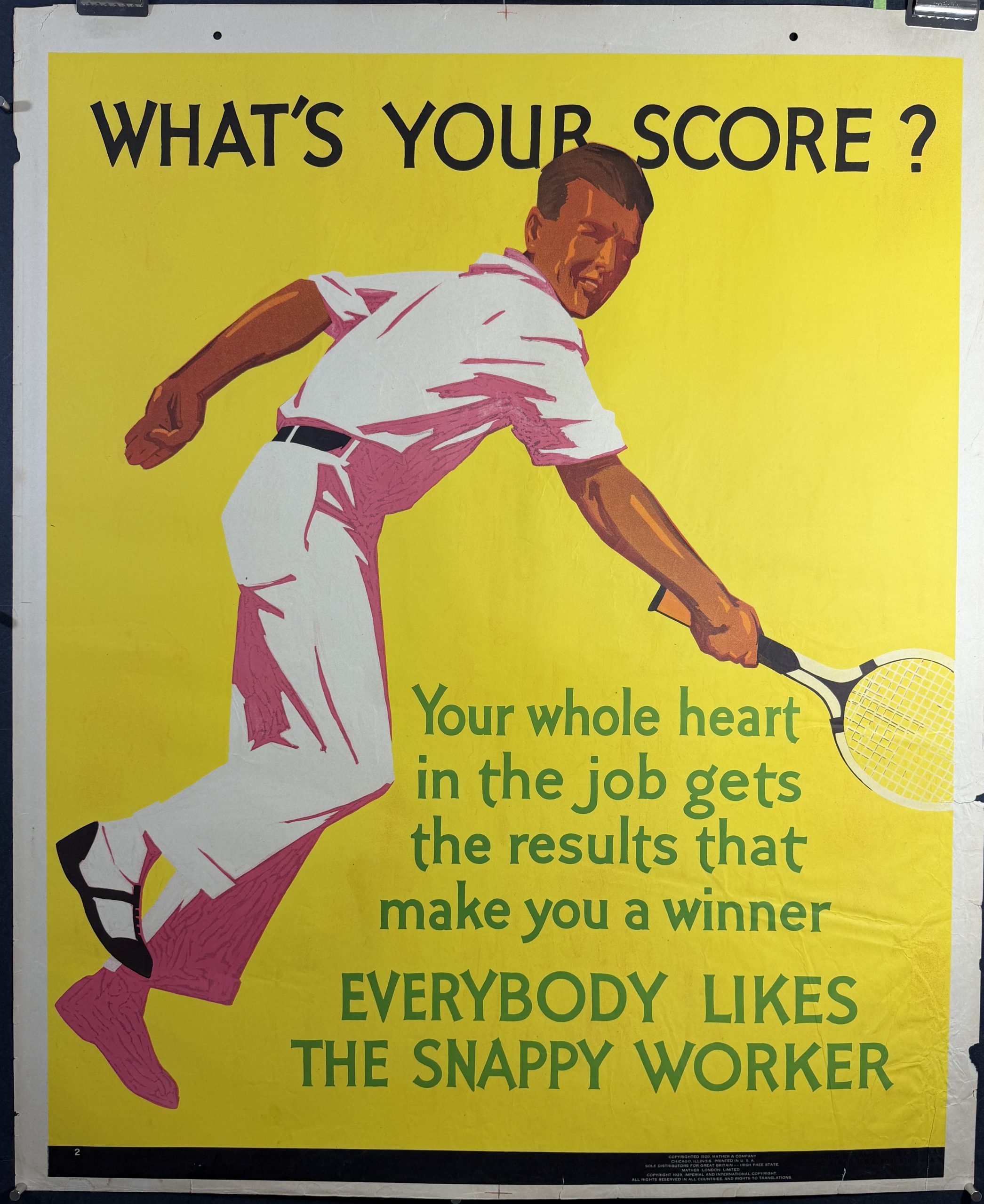 A RARE Original 1920s Mather Motivational Poster. These posters were issued and distributed by subscription between 1923 and 1929. Approximately 350 different color lithographs were designed by various artists throughout these years and promoted good, safe workplace habits …