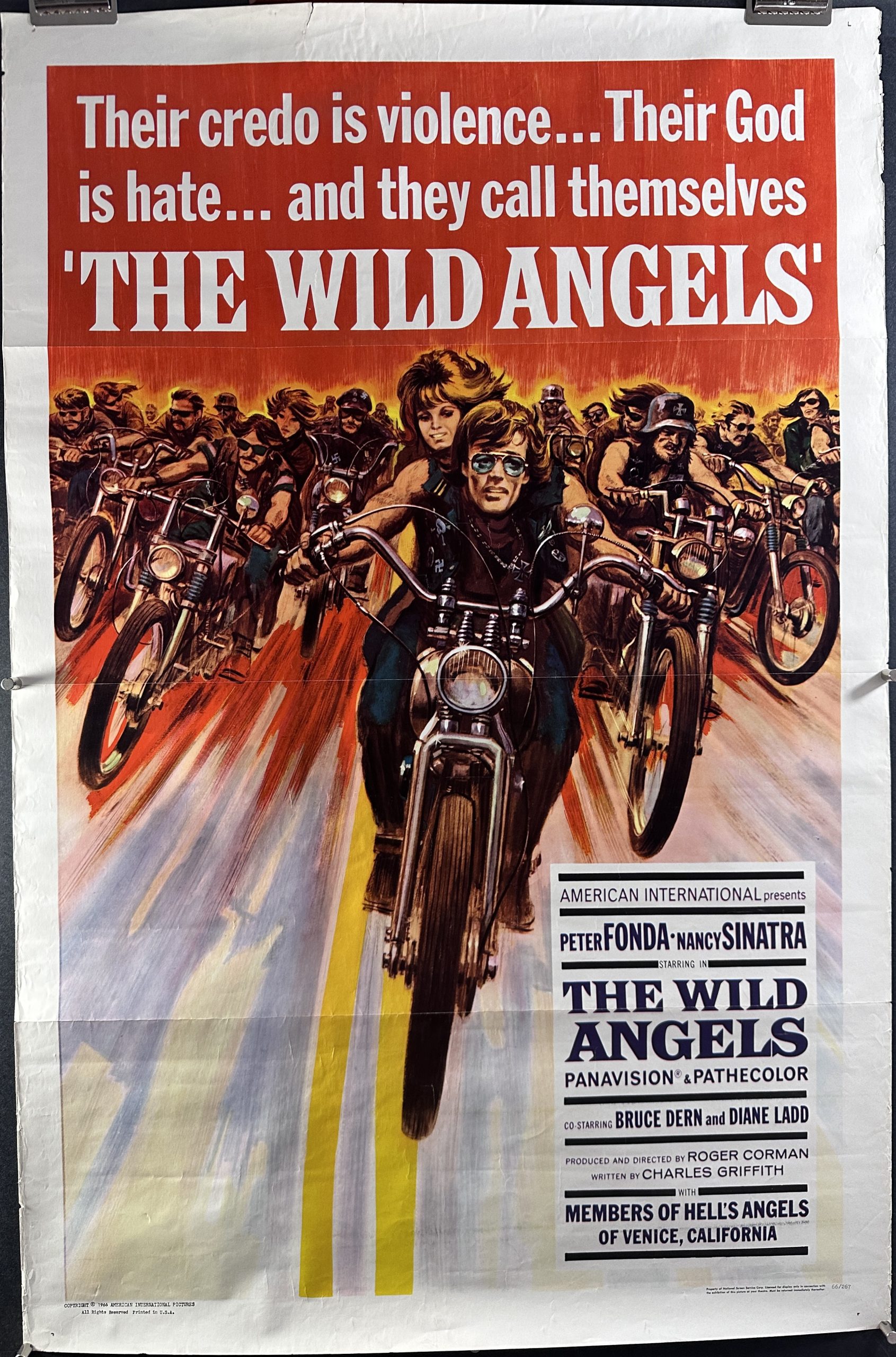 THE WILD ANGELS, 1966. Original 1 Sheet (27 x 41” / 89 x 135 cm) Trifold Movie Poster starring Peter Fonda, Bruce Dern, Nancy Sinatra and Diane Ladd and directed by Roger Corman. A classic biker movie featuring sex, drugs, rock n’ roll and the Hell’s Angels! A stolen bike set up a gang war that the cops are forced to break up in California. “Their credo is violence… Their God is hate…and they call themselves The Wild Angels”